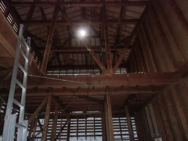 住宅の全面改修を行っています。解体工事が終わり家の中がすっきりとしました。ベランダ部分からの雨漏りがあり柱や桁が一部がボロボロになっていました。これは交換が必要です。それ以外はシロアリなど見当たらなく、土台 桁 柱は30年たつとは思えないくらい綺麗な状態でした。